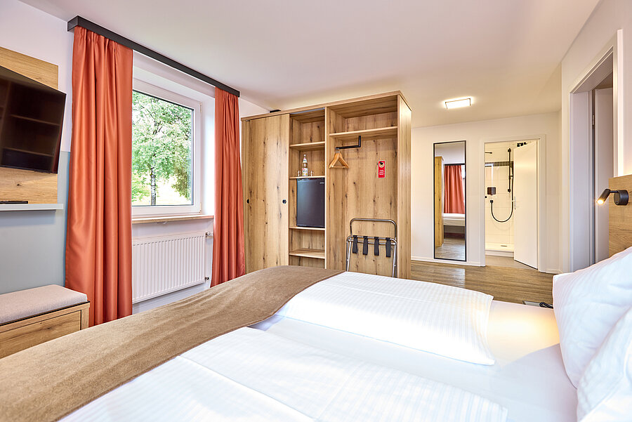 Bitte beachten Sie, dass unser Familienzimmer sowie die barrierefreien Zimmer für Rollstuhlfahrer nur auf telefonische Anfrage buchbar sind.