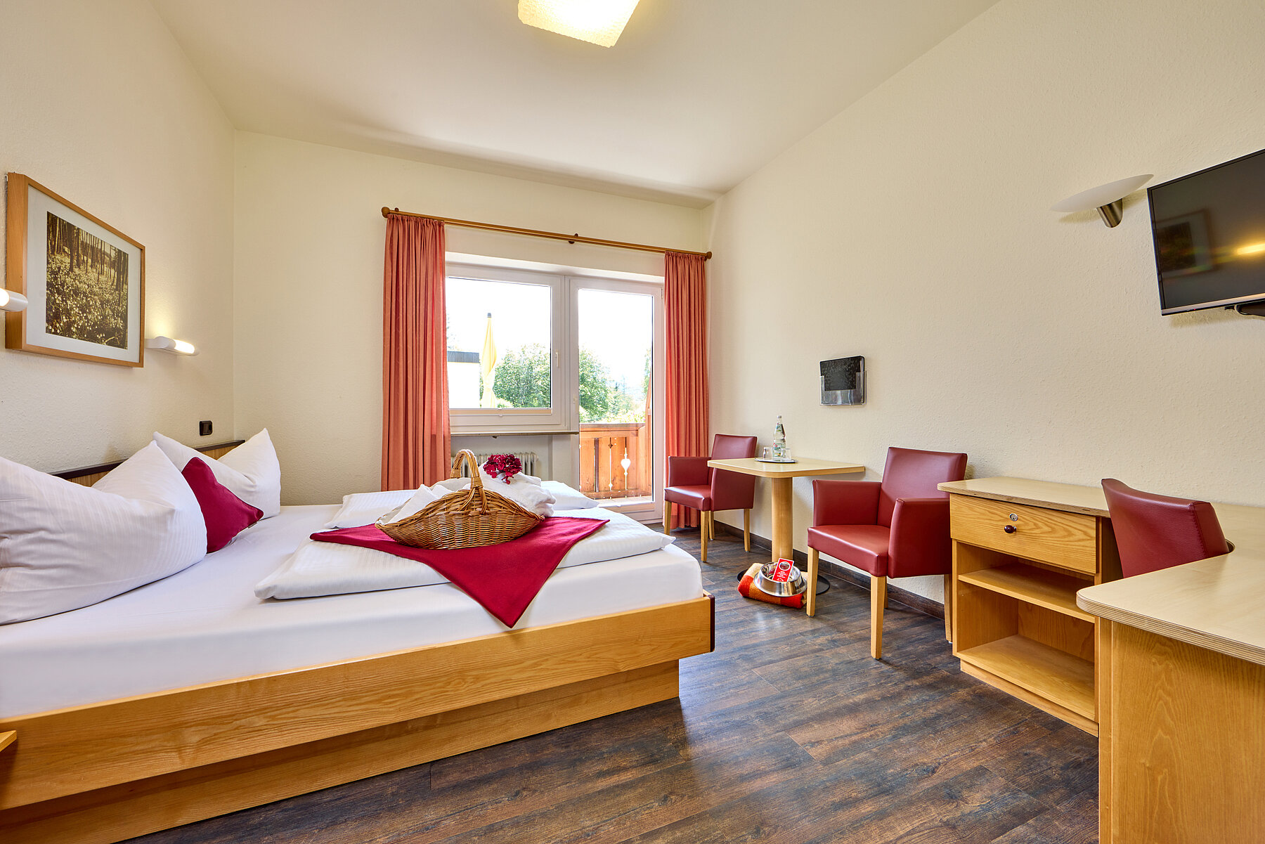 Die hellen Nichtraucher-Zimmer sind fast alle zum Park hin ausgerichtet und verfügen überwiegend über Balkon inklusive Bestuhlung und Sonnenschirm – ideal für Ruhe und Entspannung. Hier bietet sich ein traumhafter Blick auf die Ammergauer Alpen.