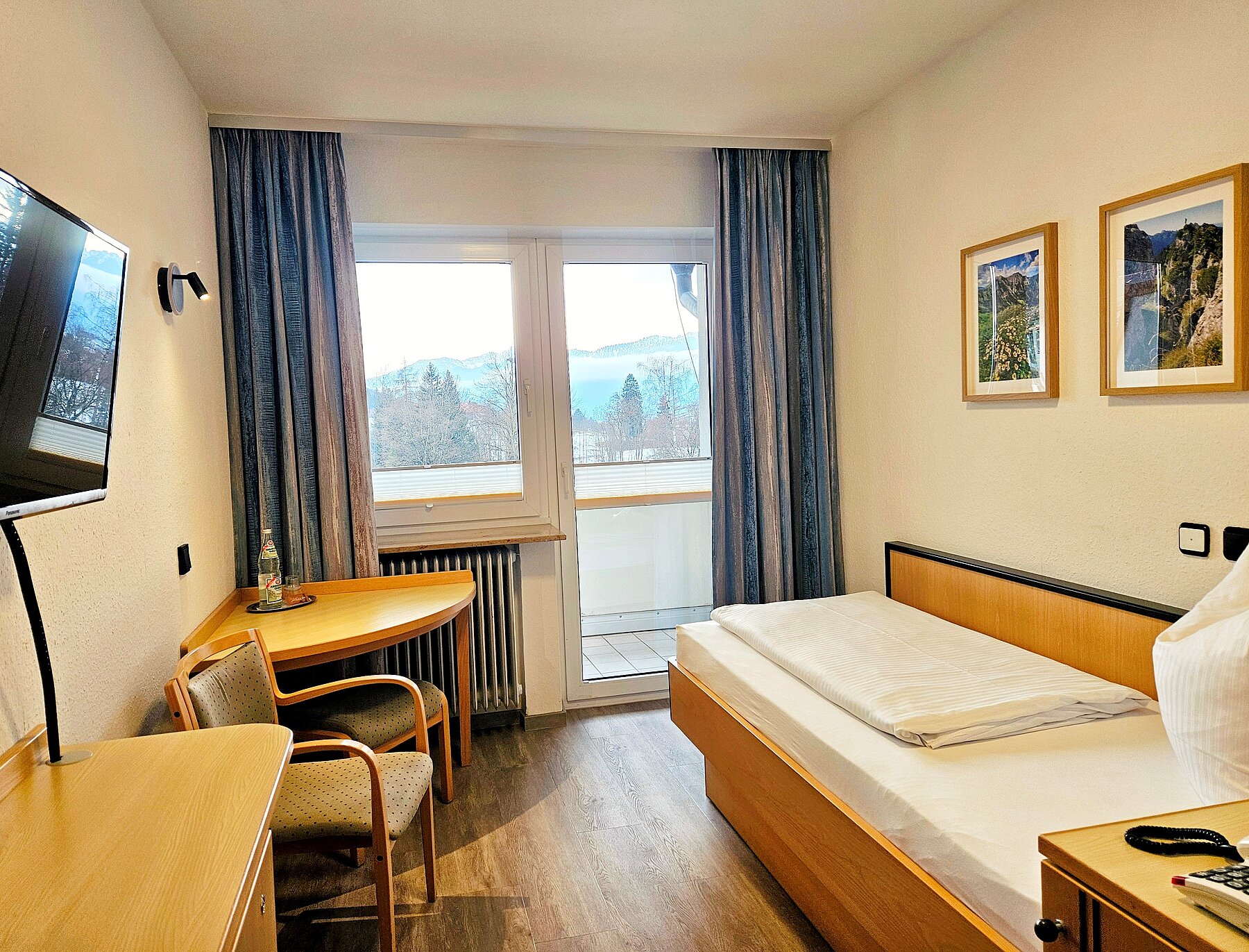 Das helle Einzelzimmer ist mit zeitlosem Mobiliar aus hochwertigen Eschenholz ausgestattet. Beim Design wurde besonders auf abgerundete Ecken und kontrastreiche Farben geachtet. Für Ihren erholsamen Schlaf halten wir eine zusätzliche Auswahl an Kissen und Decken bereit.
